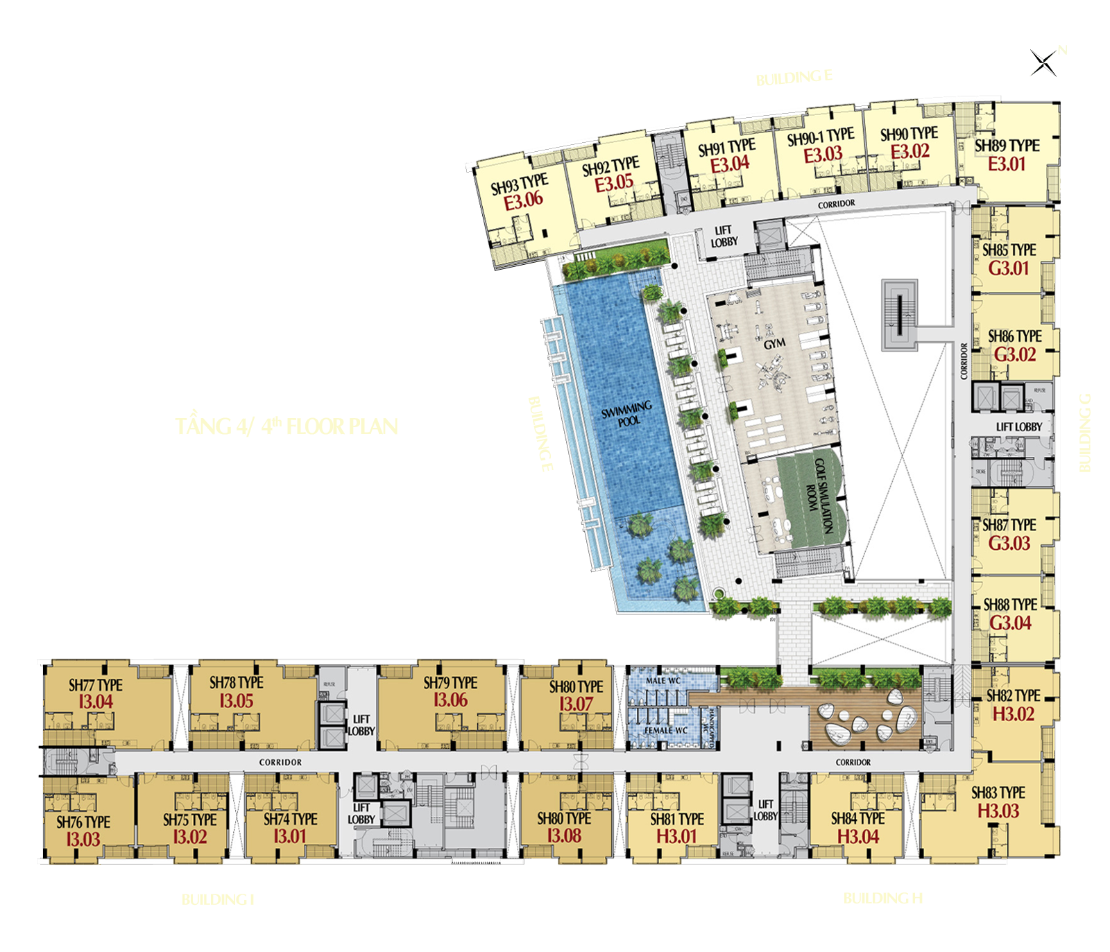 Trên khu đất rộng 56,331m2, khu phức hợp gồm 4 công trình – 4 khu căn hộ với thiết kế khác biệt, mỗi toà nhà sở hữu chuỗi tiện ích chuẩn quốc tế dành riêng cho các chủ nhân: hồ bơi, khu sauna, massage, gym, phòng đa chức năng, thư viện trẻ em… Đặc biệt, bên dưới mỗi toà nhà tích hợp hệ thống cửa hàng dịch vụ – ẩm thực cao cấp, đáp ứng đầy đủ nhu cầu của cư dân nơi đây.